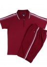 흰색줄, 자주 원앤원선, 상의, 무릎선, 네이비, 반팔, 자주색, 보라, 빨강, 자주, 체육복, 트레이닝복, 중학교, 고등학교, 단체복, 동호회, 반팔티셔츠, 반바지, 하복세트, 하복, 여름 반팔, 주문제작, 국내생산, 샤이안, 샤이안스포츠