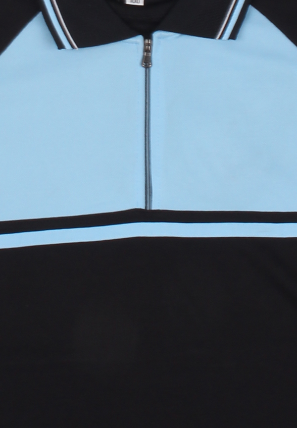 검정, 블랙, 소라색, 소라, 원앤원, 카라, 반집업, 체스트포인트, 반팔, 체육복, 트레이닝복, 중학교, 고등학교, 단체복, 동호회, 반팔티셔츠, 하복상의, 하복, 여름 반팔, 주문제작, 국내생산, 샤이안, 샤이안스포츠