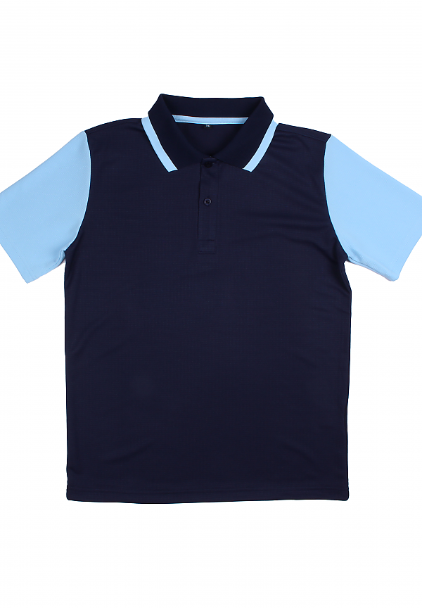 네이비 소라 배색 카라 반팔티셔츠
